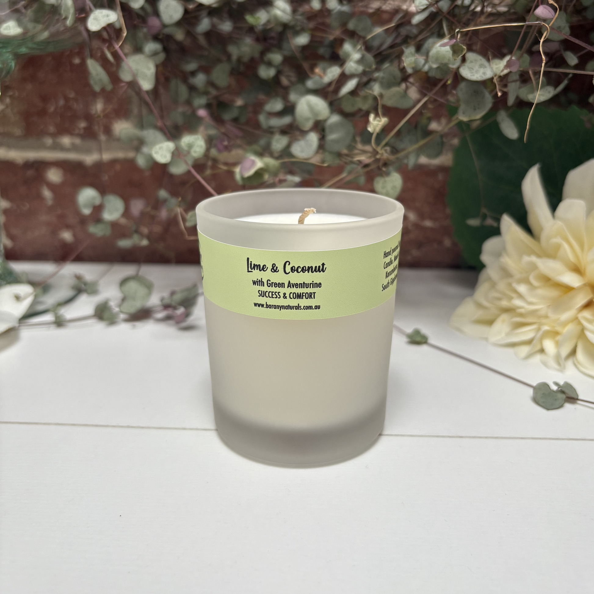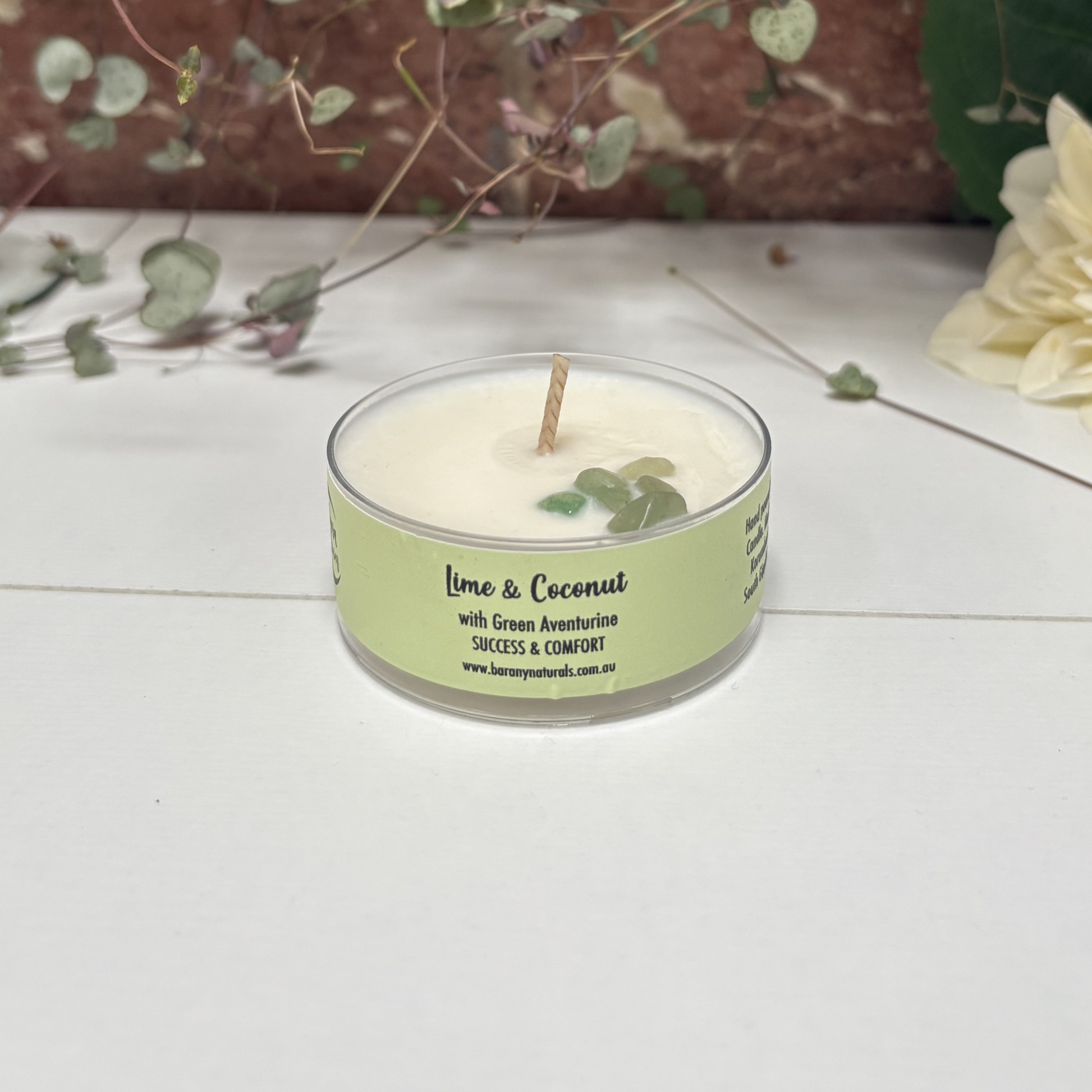 Lime & Coconut Candles with Green Aventurine Crystals.